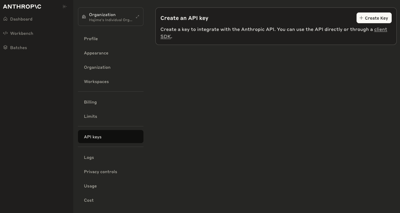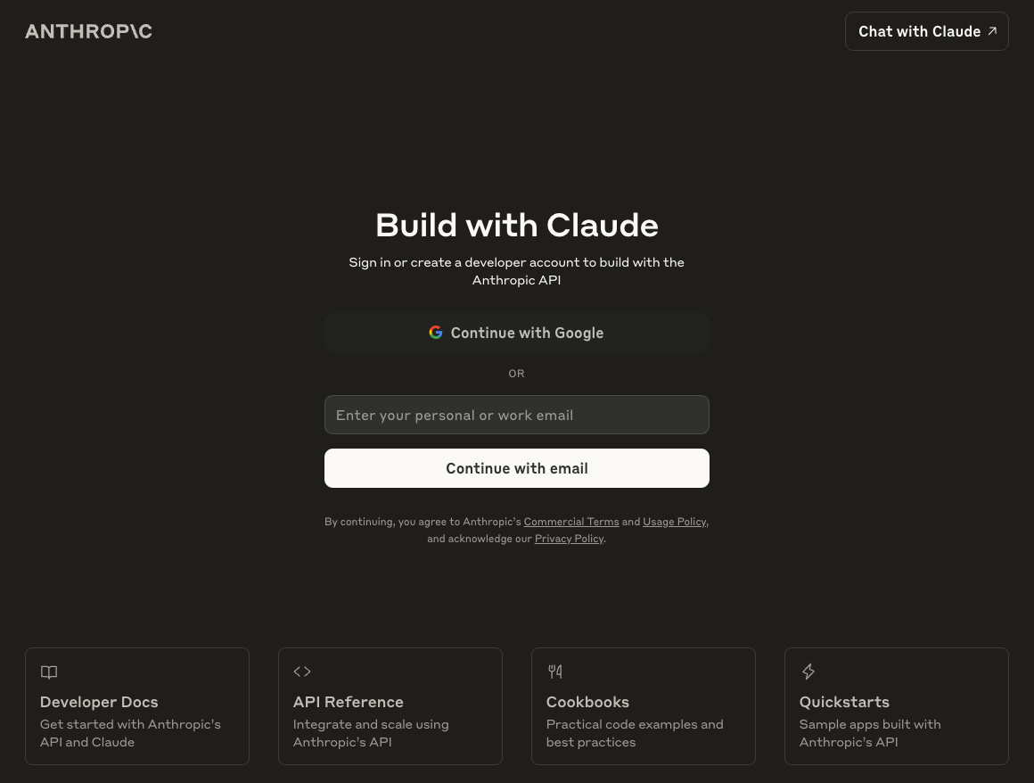 まずAnthropicのコンソールにアクセスし、アカウントを用意してください。