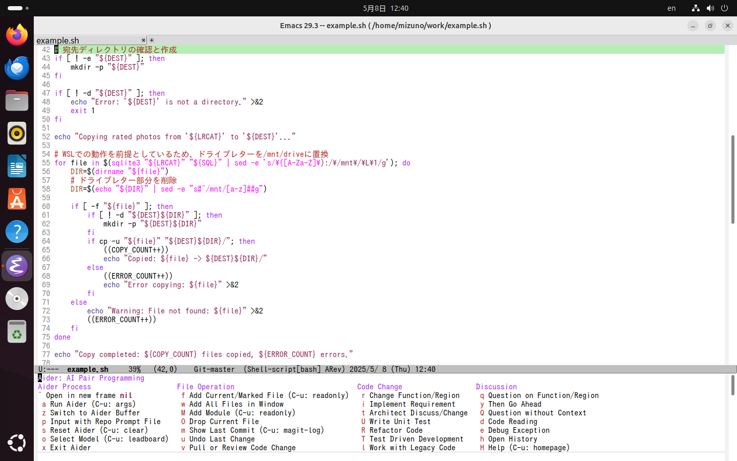 EmacsからAiderを使う
