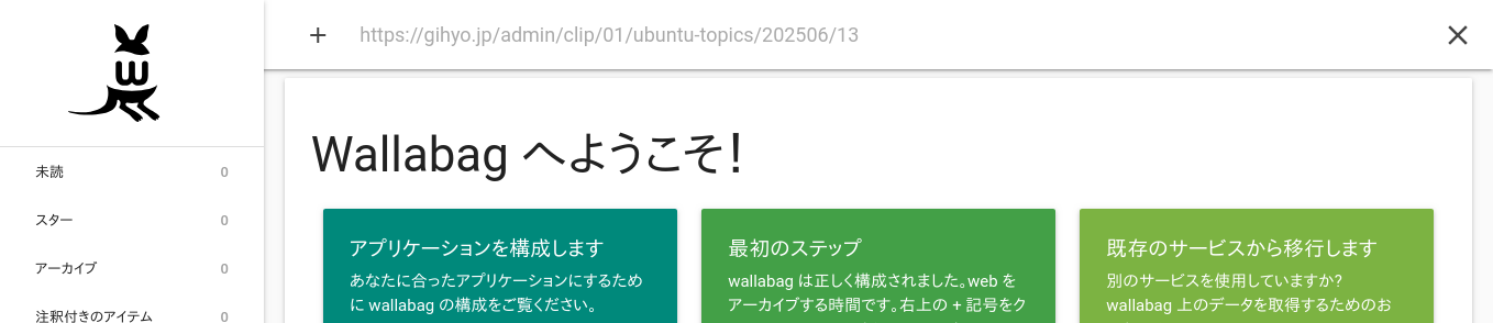 Wallabagの基本的な使い方を解説します。より詳しくはユーザー向けドキュメントを参照してください。