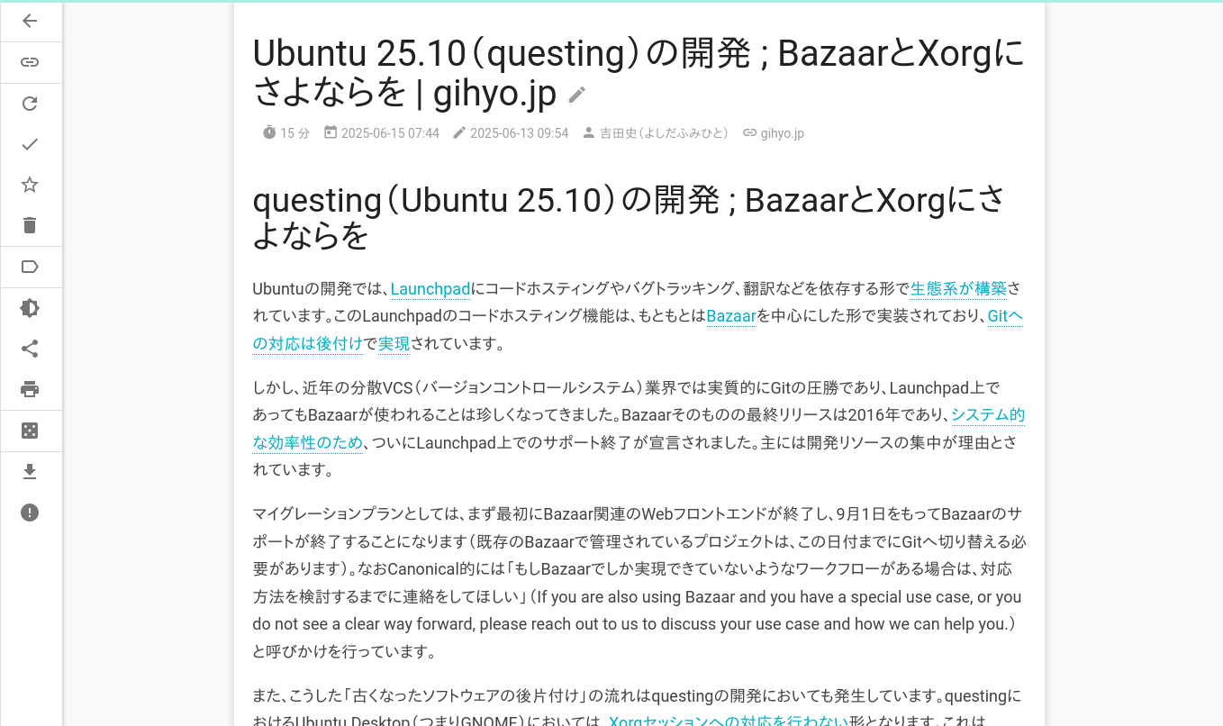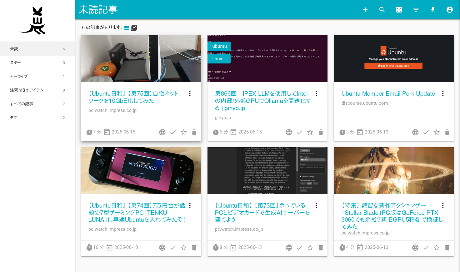クリックすることで、記事の本文を読めます。また保存した記事はお気に入りに追加したり、未読/既読を自由に切り替えることも可能です。既読になった記事はアーカイブされ、サイドバーの