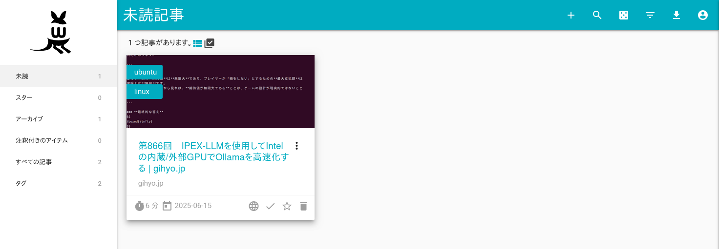 すると該当URLの記事が、未読として追加されます。