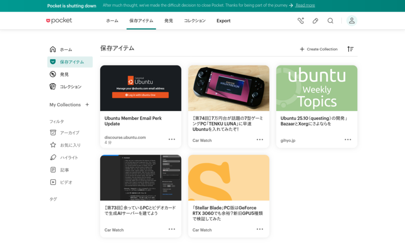 そんな便利なPocketですが、2025年7月8日をもって終了することとなりました。Pocketユーザーは、急ぎ代替サービスを探さなくてはなりません。