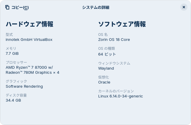 図6 Zorin OS 18の「システムの詳細」