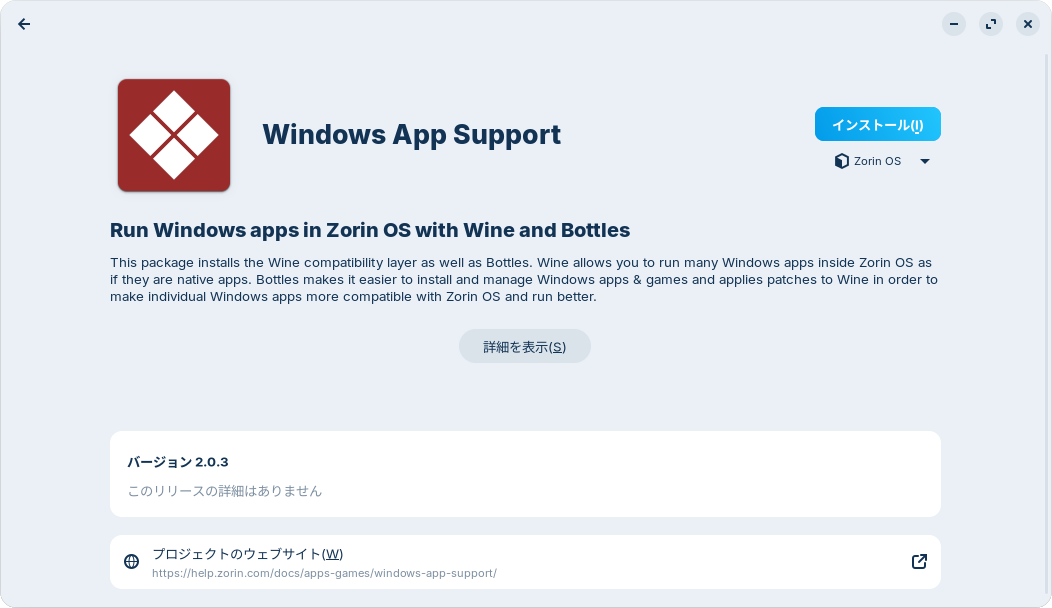 図9 Windows App SupportはBottlesをインストールする「ソフトウェア」を起動するためのショートカットで、インストール作業が必要