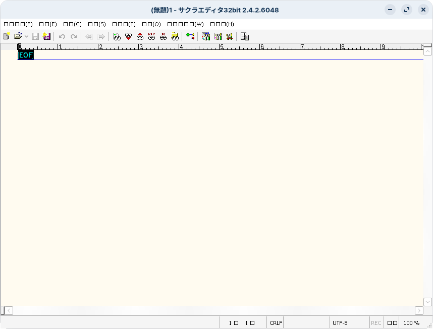 図10 Bottles経由でサクラエディタを起動したところ。フォントがトーフになっている
