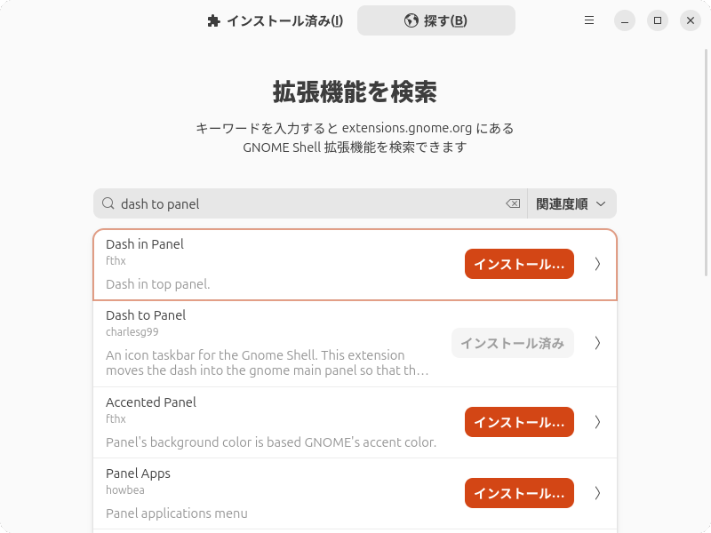 図13 Dash to Panelをインストールする。ちなみにこれはZorin製