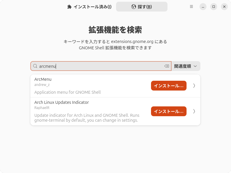 図15 ArcMenuをインストールする