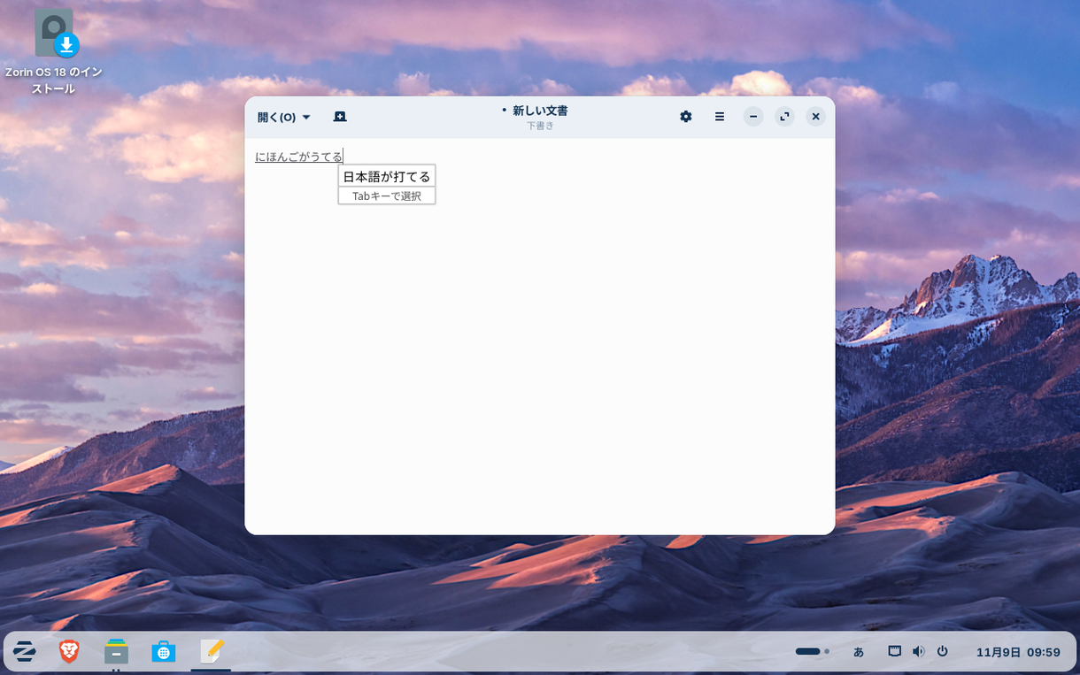 図4 Mozcもセットアップ済みで日本語が入力できる