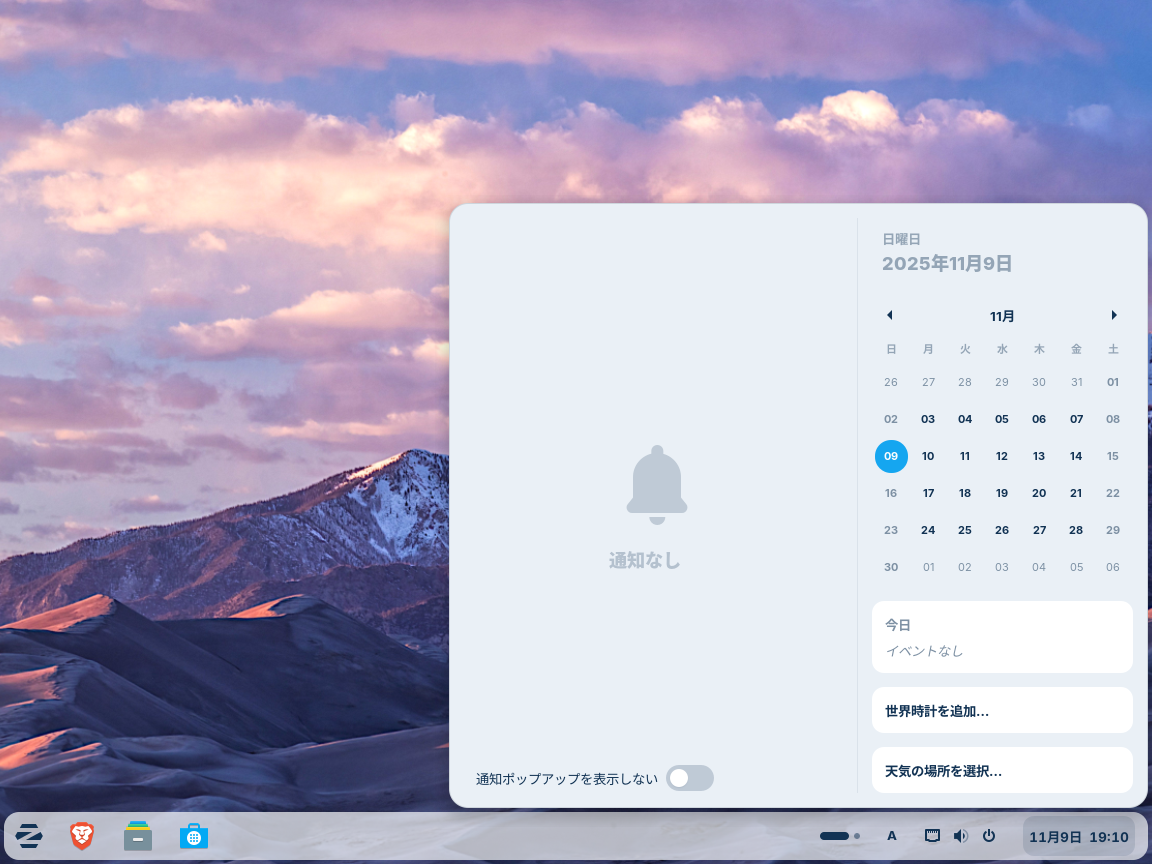時計をクリックすると、図5になりました。これはGNOMEで確定です。