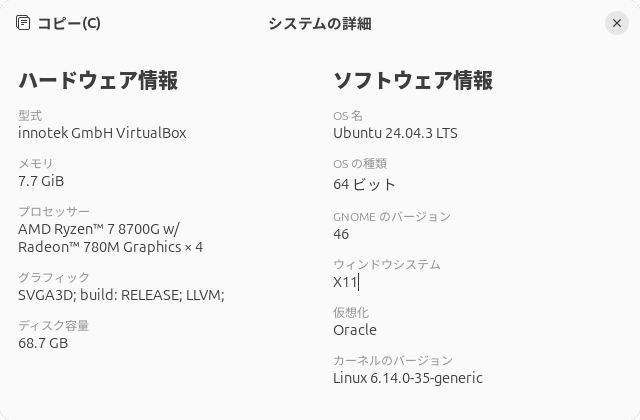 図7 Ubuntu 24.04 LTSの「システムの詳細」