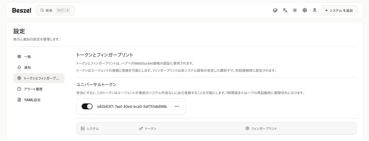 ただしユニバーサルトークンの有効期限は、有効化から1時間です。またハブを再起動すると、時間内であっても無効となります。その場合は再度設定画面から、新しいトークンを有効化してください。
