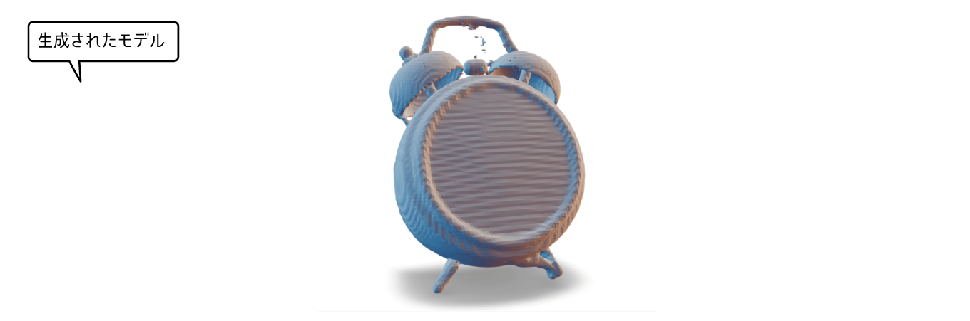 デフォルトの数値である「256」で生成された結果は以下のとおりです。想像よりもかなりきれいなモデルになっています。背面の画像をアップロードして設定できないため、背面部分は正確ではないものの、これだけのモデルを数十秒待つことで生成できてしまうのは驚きです。
