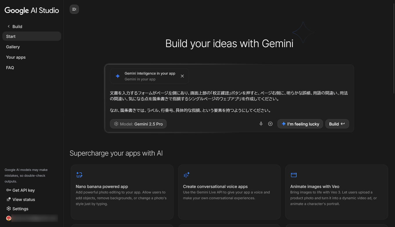 Google AI StudioのBuildモードでは、プロンプトを入力することでVibe Codingできる機能を提供していたが、今回、プロンプト入力欄の下部に