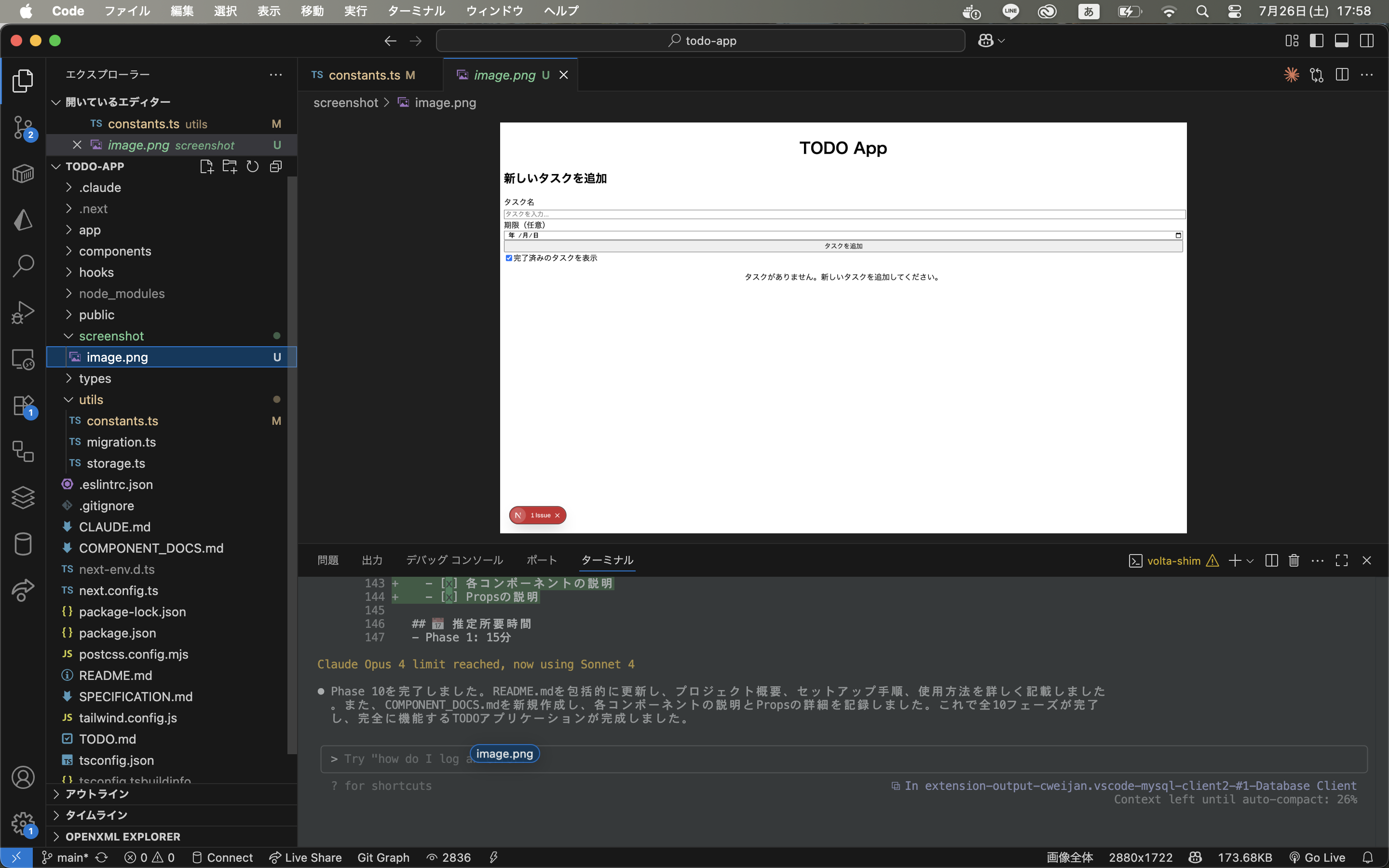 今回は、前回作成したTODOアプリの画面のキャプチャを撮影しVS Codeに貼り付けてから