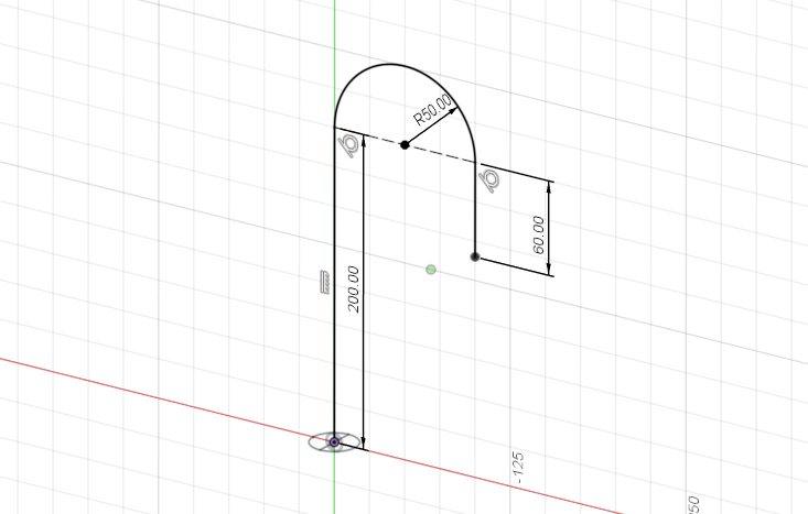 次にこの円を使って杖状のボディを作るため、杖の通るパスをスケッチします。このスケッチは円の中心を通る面に作り、パスも円の中心を始点とするようにします。