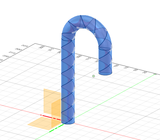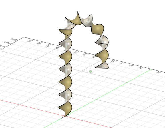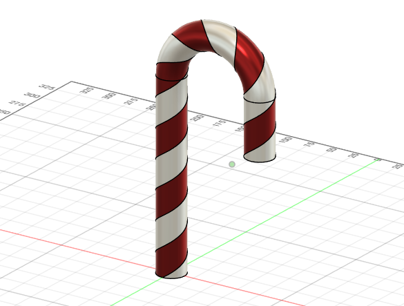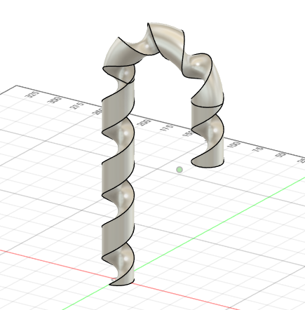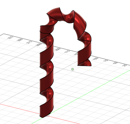 2色でキャンディケインのような形を3Dプリンターで作成したい場合、各色分のソリッドボディを作りますが、この際ソリッドでひねりの入ったモデルを作るより、サーフェスを使ったほうがシンプルに作れます。