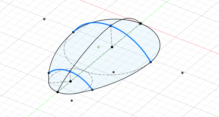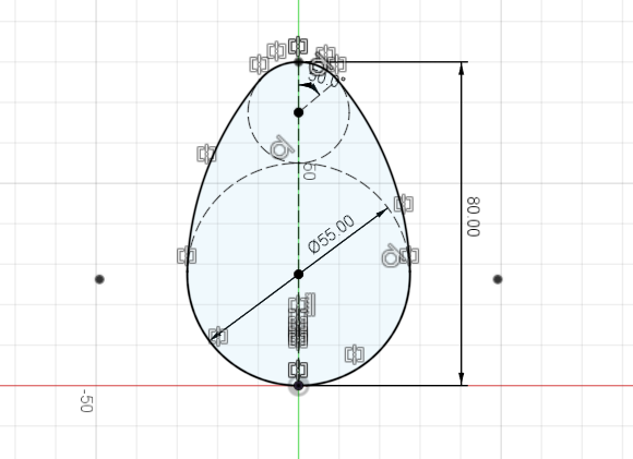 まずは真上から見たプロファイルで卵型の形を定義します。このプロファイルはすべて円と弧だけで描いています。