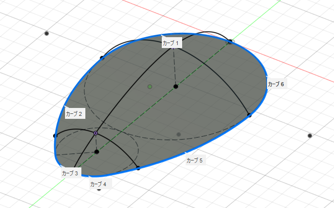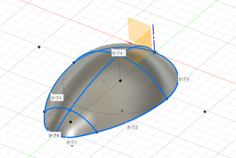 最後に縦方向から見たときにどのような曲線を描くかを定義します。ここでは横面で高さが定義された点を通る2つの曲線を描くようにします