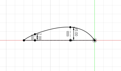 次にこの面を横から見たときにどのような曲線にそって曲がるのかを定義します。こちらはスプラインを使って凹凸の高さを描きます。