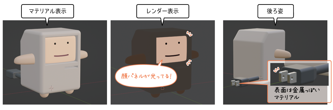 まずは代表的とも言える、パソコンくんのモデルです。このパソコンくんは、書籍の表紙を飾っていたり、書籍内でも