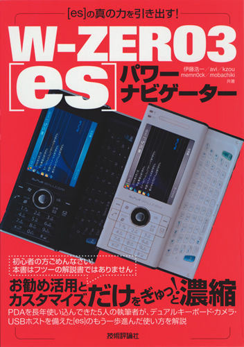 ウィルコムのW-ZERO3[es]をさらに使い込むための解説書。マニュアルに書かれているような初歩的な内容は扱わず、カメラの使いこなしや実用的な動画環境の構築、周辺機器の活用、より自分にあった使い勝手を実現するためのカスタマイズ方法などを提案する。