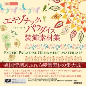 本書は西洋文化を主体に発展した今日から見て「エキゾチック」と感じられるものの図案、装飾素材を集大成したものです。エキゾチックという概念は第二次世界大戦後、ハワイから南洋方面に展開したアメリカ兵が異国的なものとして米国に持ち込み、その後、大きなカルチャーとして欧米に受容されたものです。第二次世界大戦後のアメリカでの大エキゾ・ブームはヨーロッパや日本にも飛び火し、今日でも南洋は一種の「パラダイス」イメージとしてハワイものから、タヒチやバリ島文化系の素材、図柄、文様、イラストなどは「トロピカルもの」として人気があり続けています。南洋の島々からインドやアフリカの図像・文様までを網羅した、まさにエキゾチック/トロピカルな図案・装飾の一大集成です。素材データはIllustratorのAIデータ(CS以降対応)と汎用PNGデータで、それぞれ1600点以上収録しています。
