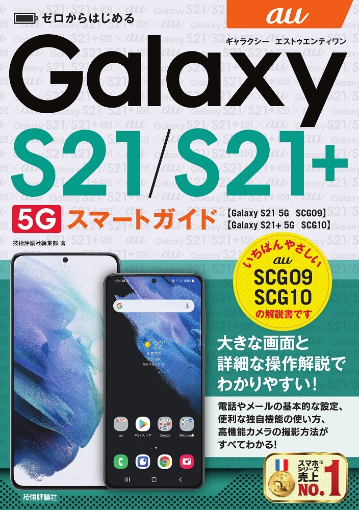 auから発売された5G対応のAndoroidスマートフォンGalaxy S21 5G SCG09とGalaxy S21+ 5G SCG10初心者向け解説書です。通話、メールといった基本から、便利に使える活用法、auやGoogleの便利なサービスなどを、わかりやすい手順解説で紹介しています。