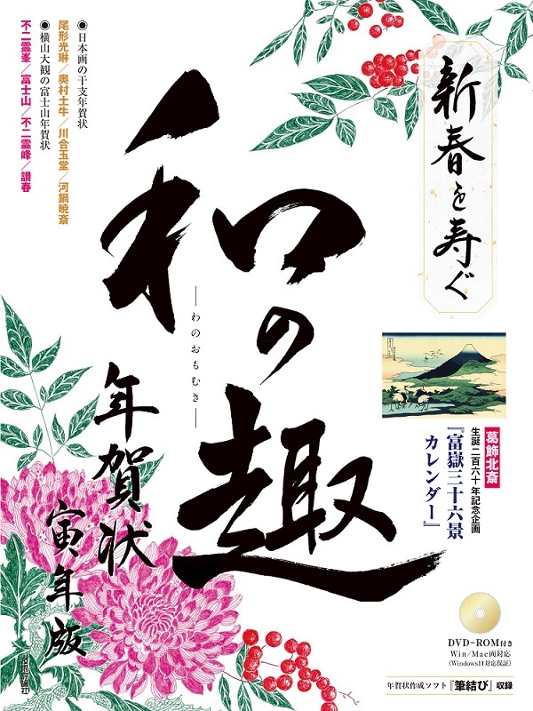 書作品を年賀状にした「書」、墨で描かれた作品を年賀状にした「墨」、水彩や色鉛筆などで描かれた作品を年賀状にした「彩」、版画やちぎり絵、切りえなどの作品を年賀状にした「創」というカテゴリーによって構成された収録素材に加え、特別収録として「日本画の干支逸品年賀状」「横山大観の富士山年賀状」「俳句の年賀状」と、和の逸品揃い。こだわりの年賀状として贈る方の品を高めること間違いありません。 Word、筆王、筆まめ、筆ぐるめなど、主要なソフトにも対応。ていねいな解説付きで安心して年賀状作成を進められます。Windows・Mac両対応のソフト(筆結び)つきなので年賀状作成ソフトがなくても大丈夫です。