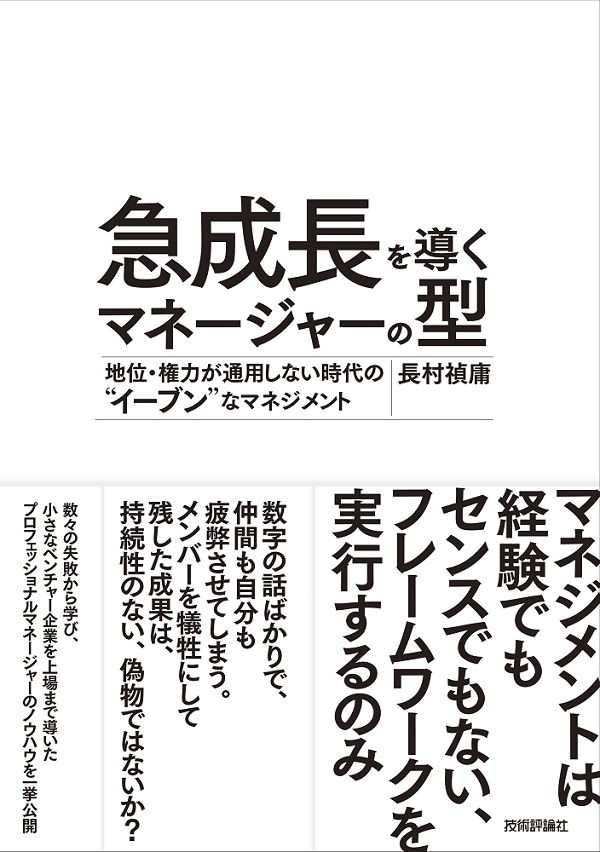 本書は、私の約10年に渡るベンチャーでのマネージャー経験や、たくさんの組織・個人への研究を通じて体系化した、「新しい挑戦を急成長させるイーブンなマネジメント技術の型」をみなさんに提供します。今の組織で成果を出すために、そしてその先にあるみなさんの自己実現が成就するために、本書が一助になればそれに勝る喜びはありません。