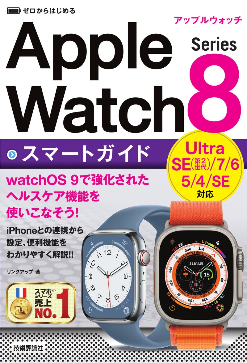 Apple Watch の初心者向け書籍です。初期設定やiPhoneとの連携操作など Apple Watchがはじめての方にもわかりやすく解説します。 Apple Watchの基本操作、標準アプリの使い方、watchOS9の新機能がしっかりわかる、Apple Watch を買ったら最初に読みたい1冊です。
