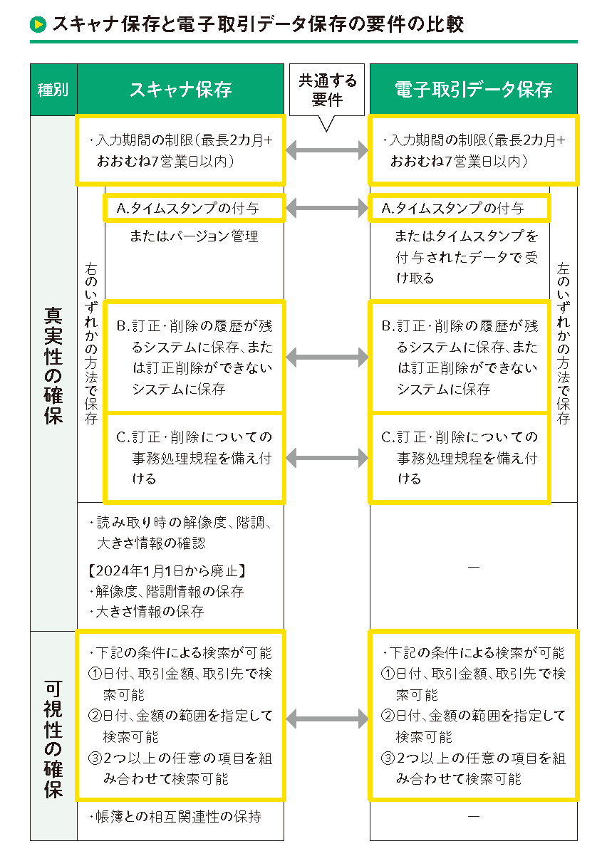 2022年1月1日以降に作成した書類については、スキャナ保存の要件が下記のように変更されています。