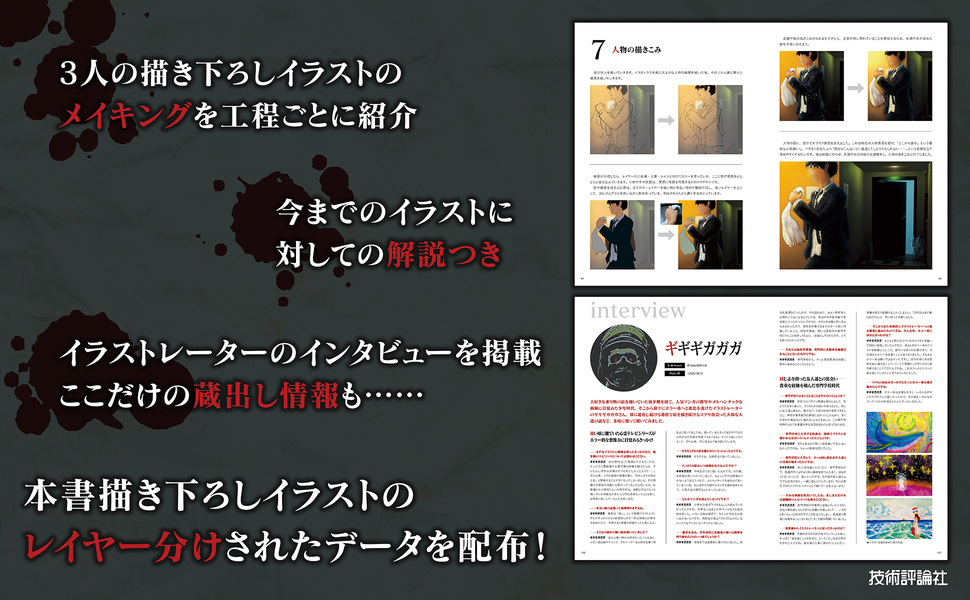 同じテーマを基に3人の人気イラストレーターがそれぞれの解釈で「こわい」をつたえる1枚を制作。メイキング+作品集+インタビューで各クリエイターの技術のみならず美学や哲学にまで迫ります。