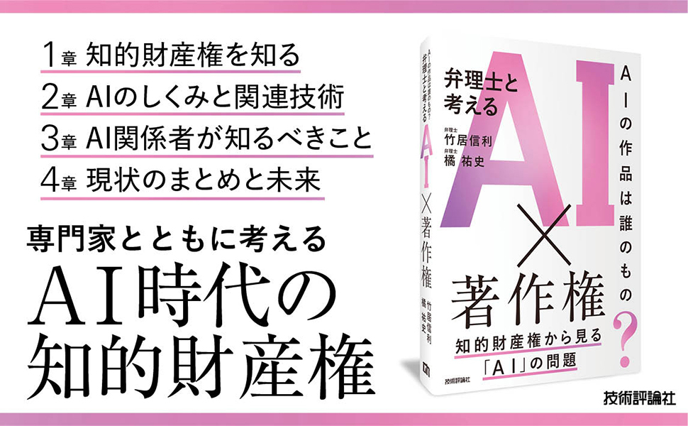 本書では特許や著作権に精通した弁理士の視点から、知的財産の中身やAIのしくみ、AI周辺の権利問題にいたるまでを過去の裁判や海外の事例などを踏まえつつ要点および論点・争点となっている箇所を整理、解説して解説していきます。