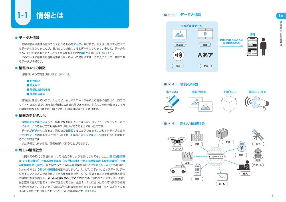 情報Ⅰが高校の必須科目となり、2025年の大学入学共通テストから情報Ⅰが始まりました。本書は高校情報Ⅰの要点を見開き形式と豊富な図でシンプルにわかりやすく解説しています。定期テストから大学入学共通テストまで対応します。ゼロから学びたい人に最適です。