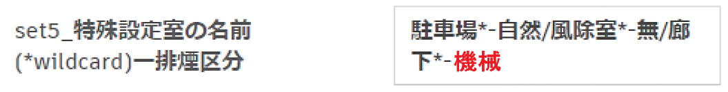 | 正 | 特殊設定室として「廊下*(ワイルドカード前方一致)-機械」 |