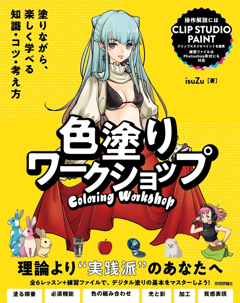 色塗りに役立つ便利な機能から、影や光で立体感を出す方法、印象をコントロールするための加工の方法まで、塗って悩んで、試しながら、楽しく身につけていきましょう!