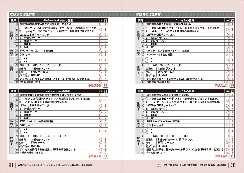 また、IPA発表の解答例と比較することができるよう複数の合格者の復元答案(著者による予想採点あり)を掲載。復元答案からは、合格する答案とはどういうものかがわかり、答えがわからなくても部分点をもらえる(かもしれない)記述の例も読み取ることができます。