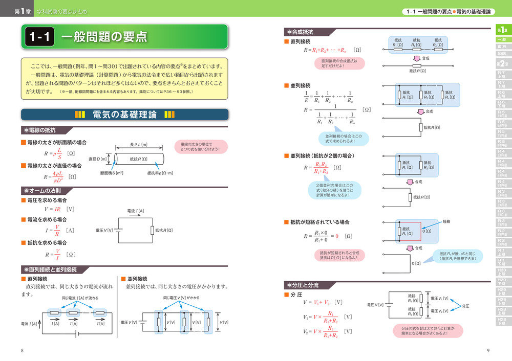 平成28年から令和7年までの10年間に出題された第二種電気工事士の学科試験問題(筆記方式)を全て掲載し、解き方を豊富な写真や図を使ってわかりやすく解説しています。全ページカラーなので、本番の試験さながらに学習できます。