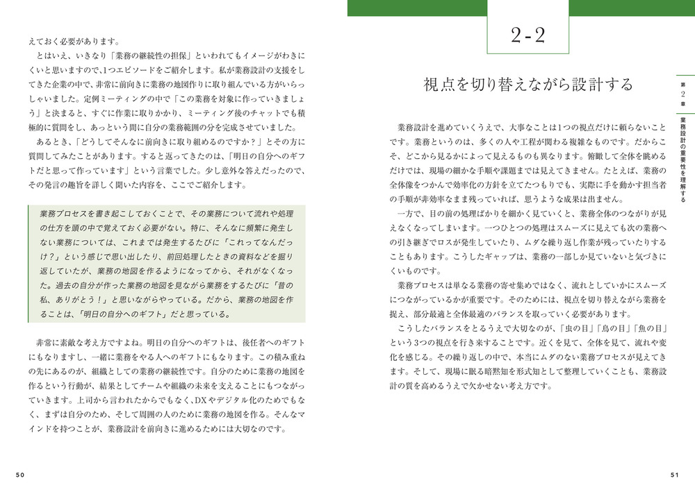 「DX」や「AI導入」を成功させる鍵は、システムやAIの性能ではなく業務を整理し、仕組みとして整える「業務設計」にあります。日々の業務を誰でも理解し、再現できるかたちで体系化したのが本書です。現場主導で業務を変えていく力を一緒に身につけていきましょう。