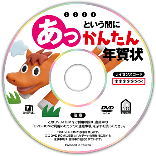 このページでは『あっという間にかんたん年賀状 2026年版』のDVD-ROMデータをダウンロードできます。ダウンロードにはライセンスコードとメールアドレスの登録が必要です。