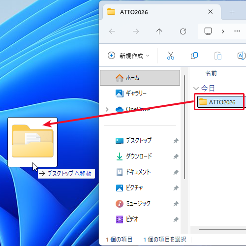 [ATTO2026]フォルダが表示されますので、デスクトップにドラッグ&ドロップします。