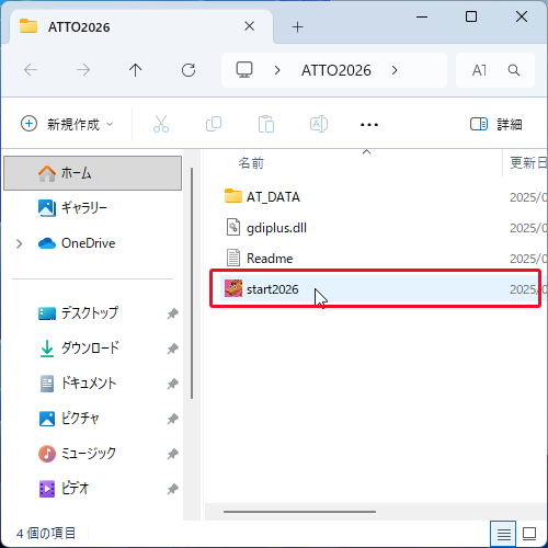[ATTO2026]フォルダをダブルクリックして、[start2026]アイコンをダブルクリックしてください。