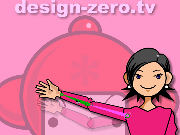 インバースキネマティック(IK)は、人やロボットなど、関節を動かすのようなアニメーションに適した機能です。ボーンツールを使って直線を描くようにドラッグしながら、絵のなかに「骨」を埋め込んでいく作業になります。