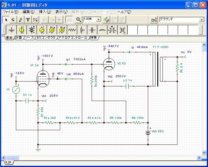 その答えは電子回路シミュレータTINAが出してくれます。使ってみたい思い入れのある真空管や、秘蔵していた真空管を生かして使ってみたいと考えている方にもお薦めします。