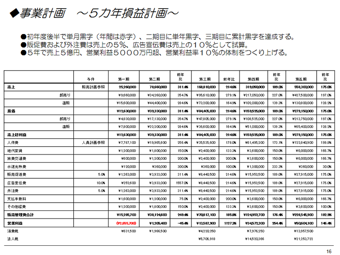 この二つの事業では、人・モノ・金・情報について網羅しようとすると、企画書だけではカバーしきれないところが出てきます。そこで必要になるのが事業計画書。企画書はA4一枚にまとめるのが美しいという声をよく聞きますが、事業計画書はさすがにペラ一枚というわけにはいきません。