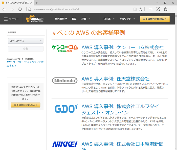 これに対しても、とくに心配はないといえるでしょう。クラウドベンダーもセキュリティに関しては十分な対策を講じていますし、実際に数多くの企業がクラウドを導入しています。以下のような導入事例を見ると、みなさんも知っているような企業やショッピングサイトもあると思いますが、これらのサイトでデータが盗まれたという話は聞かないでしょう。それだけクラウドベンダーもセキュリティに気を遣っており、また大きな企業でも安心してデータを預けているということがわかるかと思います。