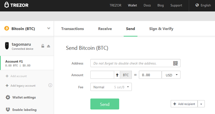 なお、ハードウェアウォレットは、秘密鍵が専用のハードウェアに格納されているため安全という論調が世間ではありますが、ハードウェアウォレットを接続するPC端末がオンライン環境にある場合は注意が必要です。例えば、図2は、ハードウェアウォレットであるTrezorのPC上での送金用の操作画面ですが、コピーした送金先アドレスを画面にペーストする際に、マルウェアによってクリップボード内のアドレスを攻撃者のアドレスに書き換えられれば、秘密鍵は盗まれずとも不正送金されるリスクはあるためです。