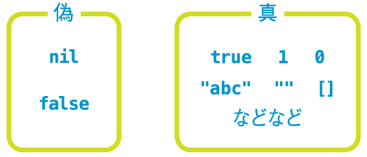 Rubyの真偽値はnilnull)falseだけが偽で、
