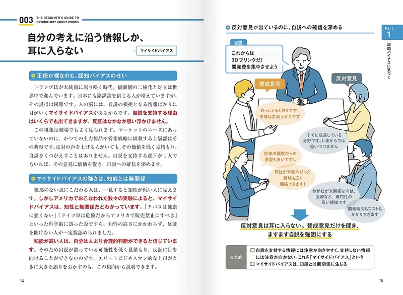 まずは、私たちの判断を無意識のうちに左右する「認知バイアス」に注目します。自分では合理的に考えているつもりでも、実際にはさまざまな思い込みや偏りに支配されています。この章では、職場でのすれ違いや誤解の背景にある「思考のクセ」を明らかにしていきます。