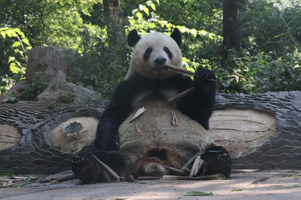 わたしはちょうど上野動物園にいて、レイレイを観覧中でした(ほかのパンダは施設改装で非公開)。レイレイは午後3時半すぎまで、ずーっと寝ていました。暑くて園内は空いていたため、茫然自失の状態で、レイレイを周回して観覧していました(何周したのかも覚えていません)。最後の観覧時の、ほんとうに最後の瞬間に、やっと起きました。